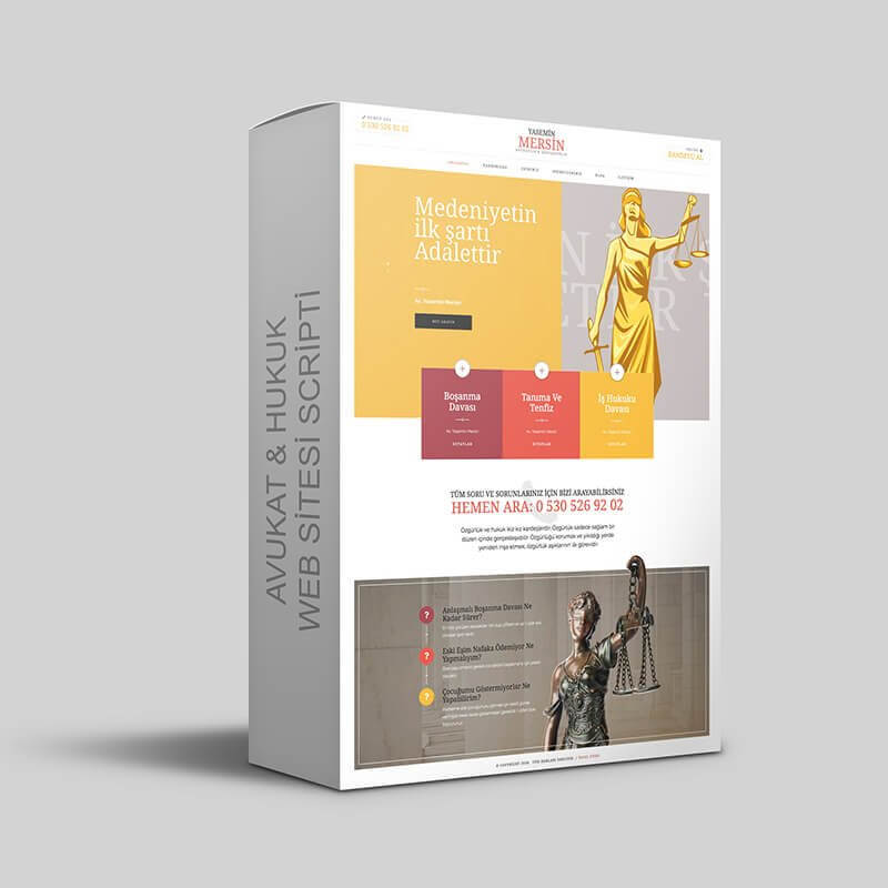 Avukatlar ve hukuk büroları için tasarlanmış modern web sitesi scripttir. Script içeriğinde gelişmiş yönetim paneli mevcuttur. Yönetim panelinden sayfaların içeriğini, isimlerini ve meta tagları dahil tüm özellikleri üzerinde değişiklikler yapabilirsiniz.