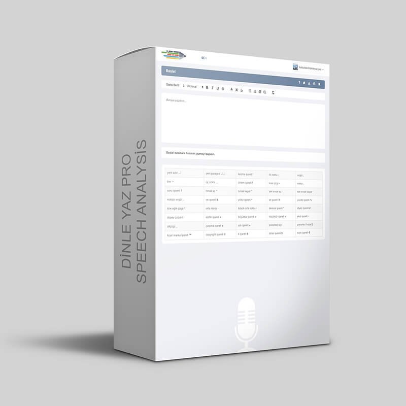 Günlük işlerinizi, toplantılarınızı, mahkeme salonlarında duruşmaları, siyasi tartışmaları, ekonomik forumları vb. tüm konuşma türlerinde ortamı dinleyerek yazıya dökebilir. Dinle Yaz ProTM bulunduğu ortamı dinler, analiz eder ve %80 (+5,-5) doğruluk payı ile metne döker.