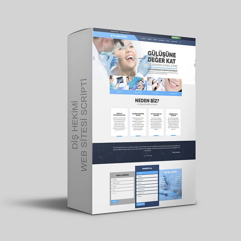 Ağız ve diş sağlığı merkezleri veya diş hekimleri için özel olarak tasarlanmış (ASP) bu web sitesi scripti ile saatler içerisinde kendinize diş hekimliği websitesi yapabilirsiniz.