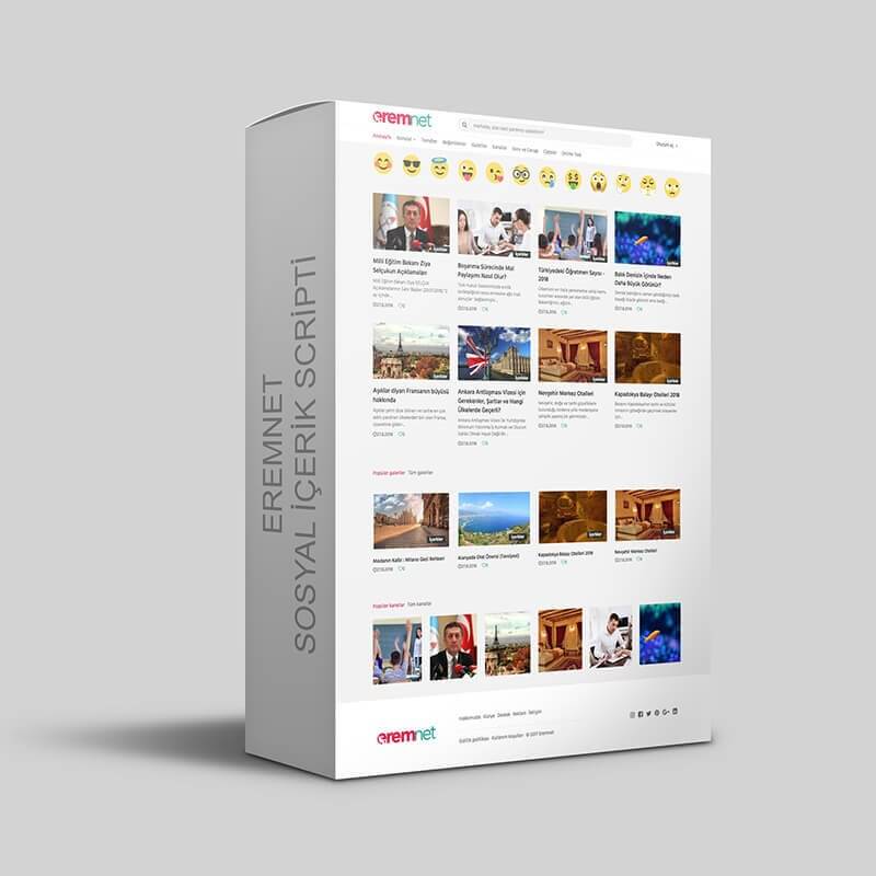 Eremnet Sosyal Paylaşım Scripti; kullanıcıların içerik paylaşmasını ve paylaşılan içerikler üzerinde etkileşim yapabilmesini sağlayan sosyal paylaşım scriptidir. Scriptin asıl amacı Google Adsense geliri sağlamasıdır. Web sitesi üzerinde girilen içerikler kategorilere göre ve emojilere göre gruplandırılır. Bu sayede ziyaretçi sadece kategorisel filtreleme yapmak yerine emojisel filtreleme yapabilir.